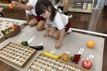 幼児期は、言葉に対して大変感受性が強い大切な時期です。 整えら れた環境の中で感覚的な要素をもった教具を系統的 に使うことによっ て子ども 自身で楽しく言語習得ができるよう工夫されています。