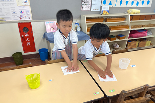 それぞれ役割を持ち、お片付け、次の準備などお当番活動を行います。